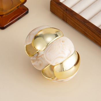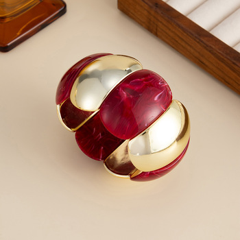 Pulsera elástica de resina empalmada acrílica de estilo antiguo artístico Pulsera geométrica exagerada de moda con color degradado