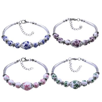 Nuevo JingDeZhen, joyería impresa de cerámica hecha a mano, pulsera de viento nacional, pulsera de porcelana azul y blanca como regalo para mujer