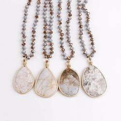 Nuevo ribete dorado hecho a mano, Ágata real natural pura, forma de Guijarro, cuentas de cristal, COLLAR COLGANTE anudado para la buena suerte