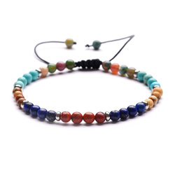 Pulsera tejida de lapislázuli de ojo Tige de piedra natural de 4mm, pequeño espaciador de metal de acero inoxidable, pulsera ajustable de estilo bohemio
